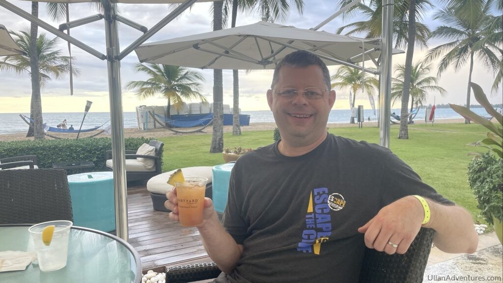 We started with an overnight in Puerto Rico where the first order of business was getting outside for some ocean and cocktails!