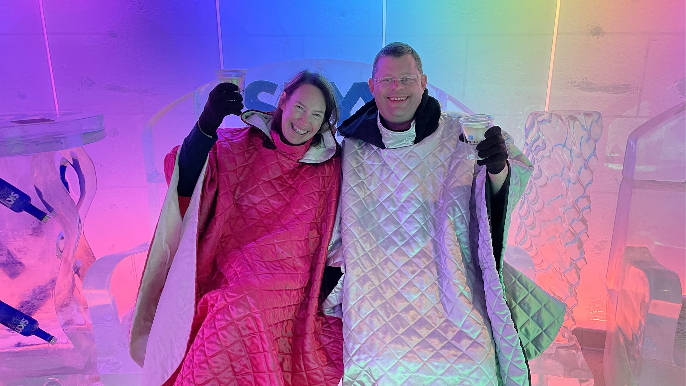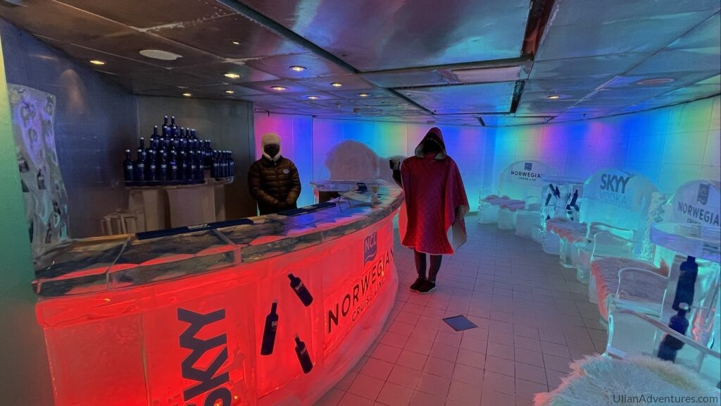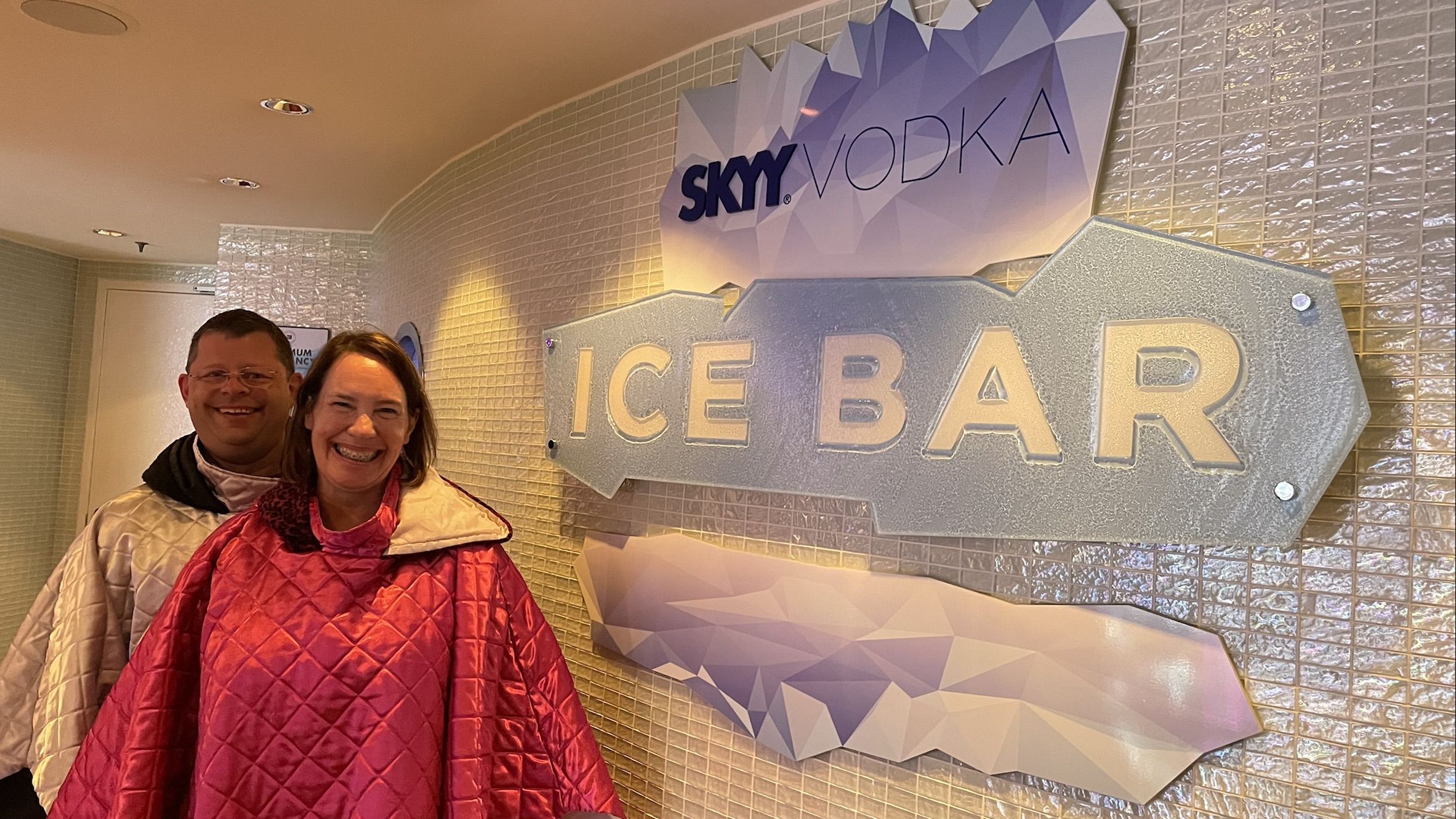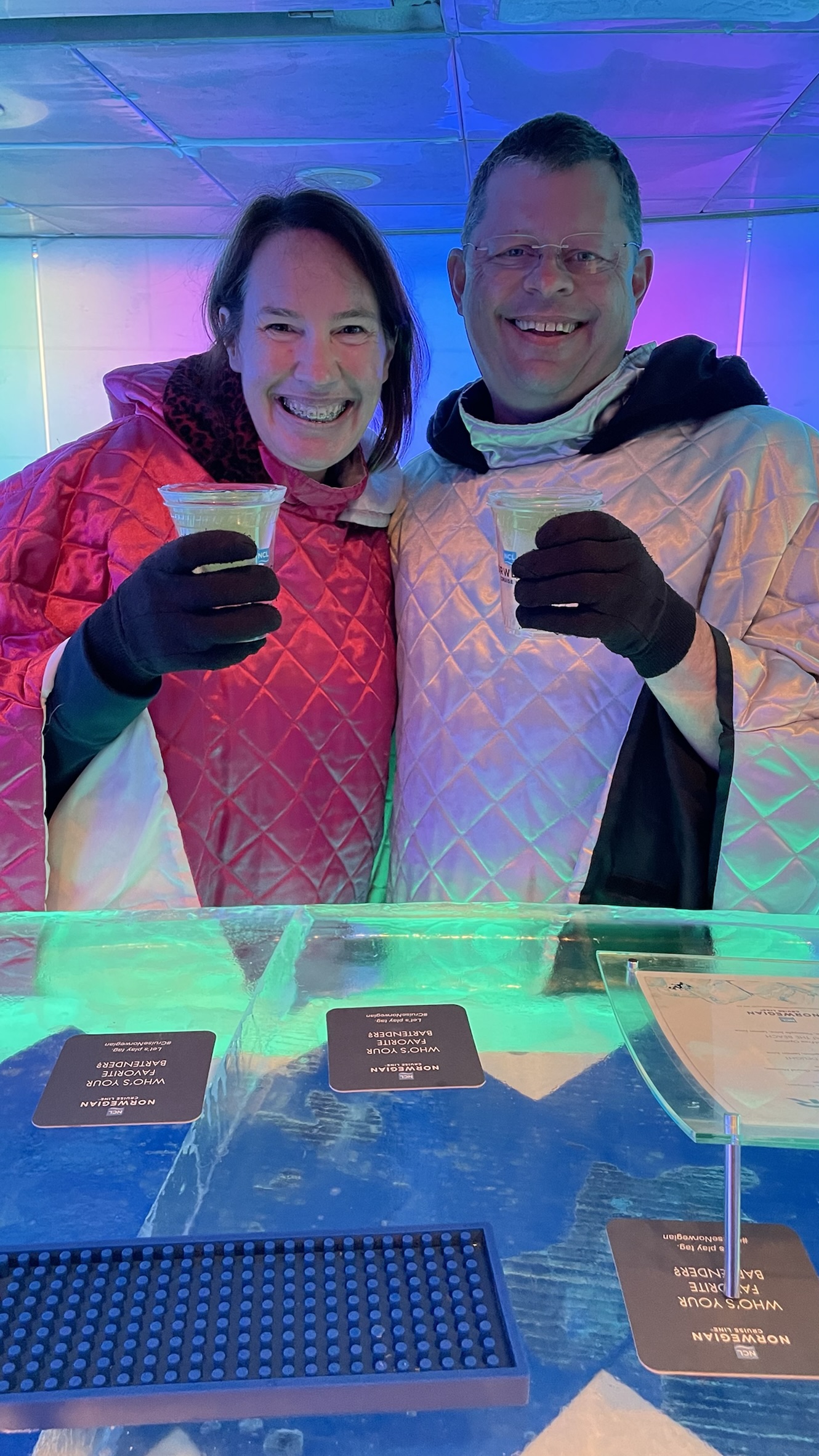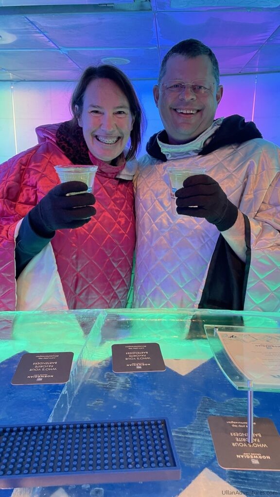 We even had the Ice Bar on the ship all to ourselves. The bartender was awesome and took our picture and had us go behind the bar. Cold, but fun!