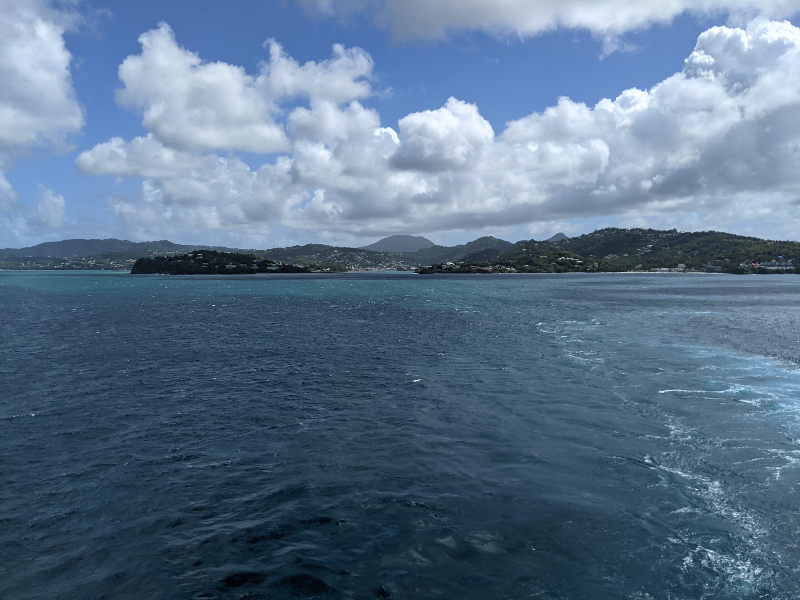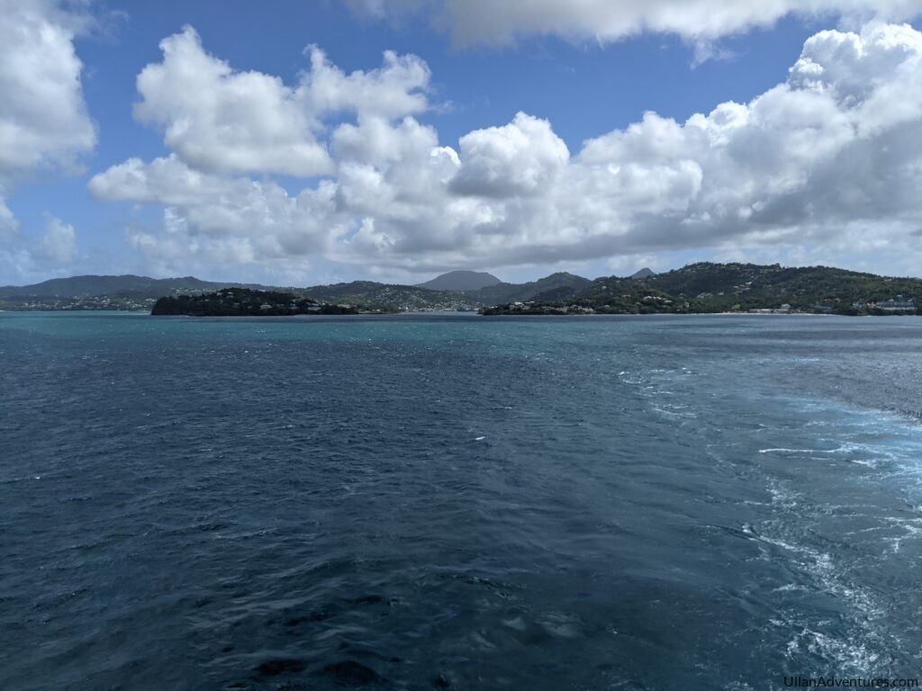 Our next stop was supposed to be St. Lucia. Unfortunately the wind was too strong for us to dock. We stayed off the coast for a few hours, but the wind never died down enough for us to dock. I’ve been to St. Lucia a couple of times before so I wasn’t that disappointed, and if we were going to miss one stop, this was the one (for us at least). We had some cool flying fish hanging around the boat and on our journey away so I was enthralled watching them.