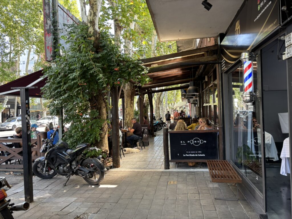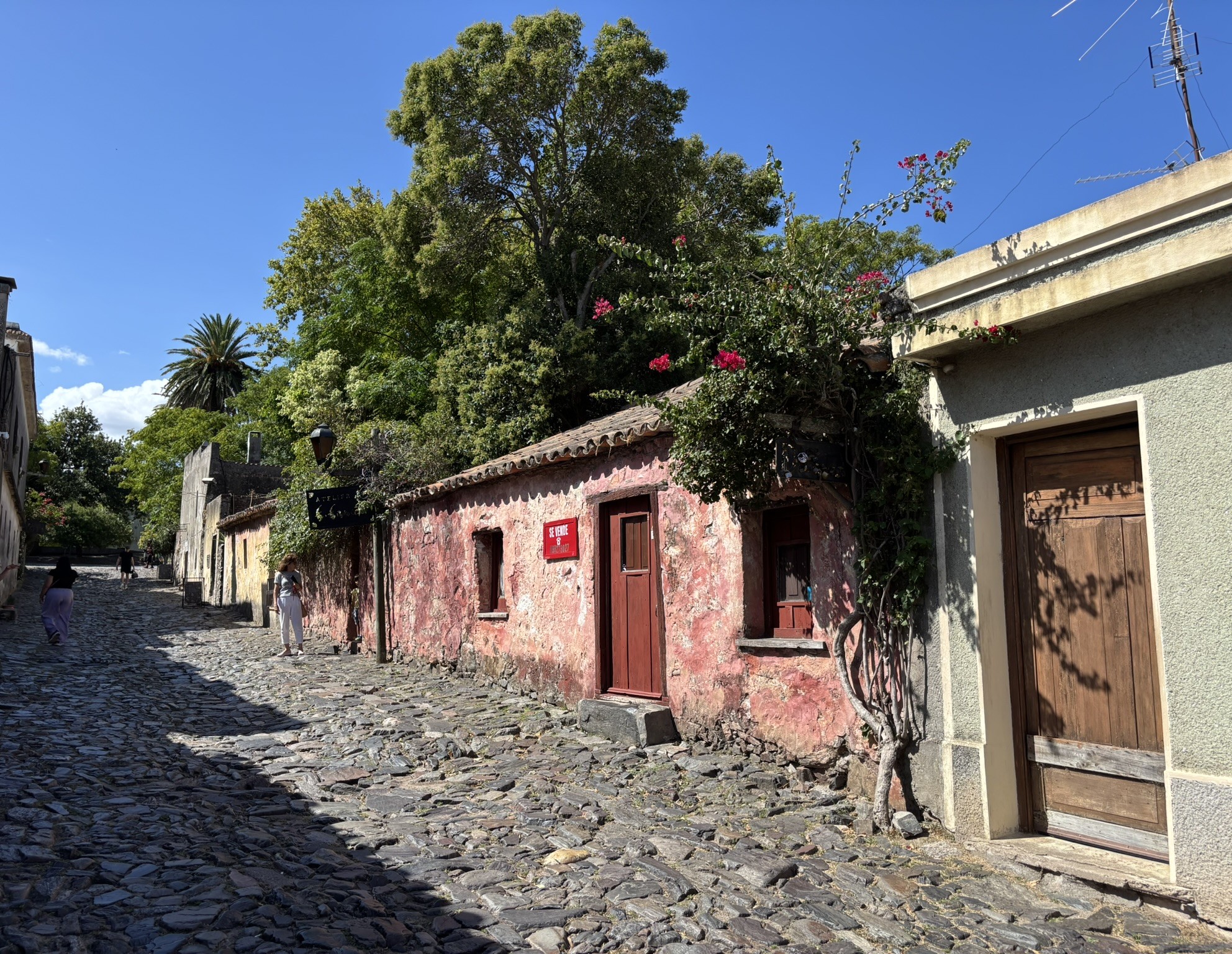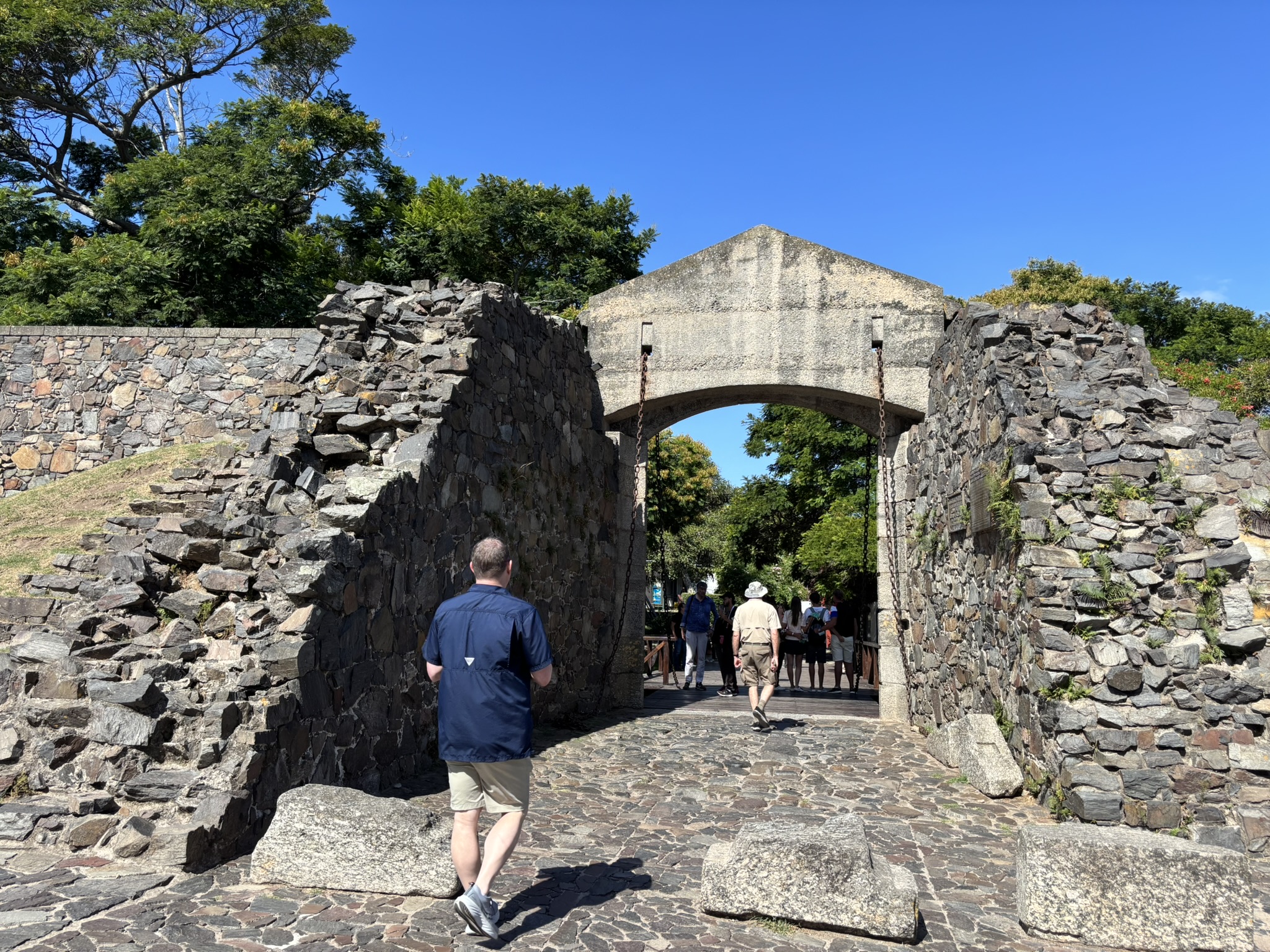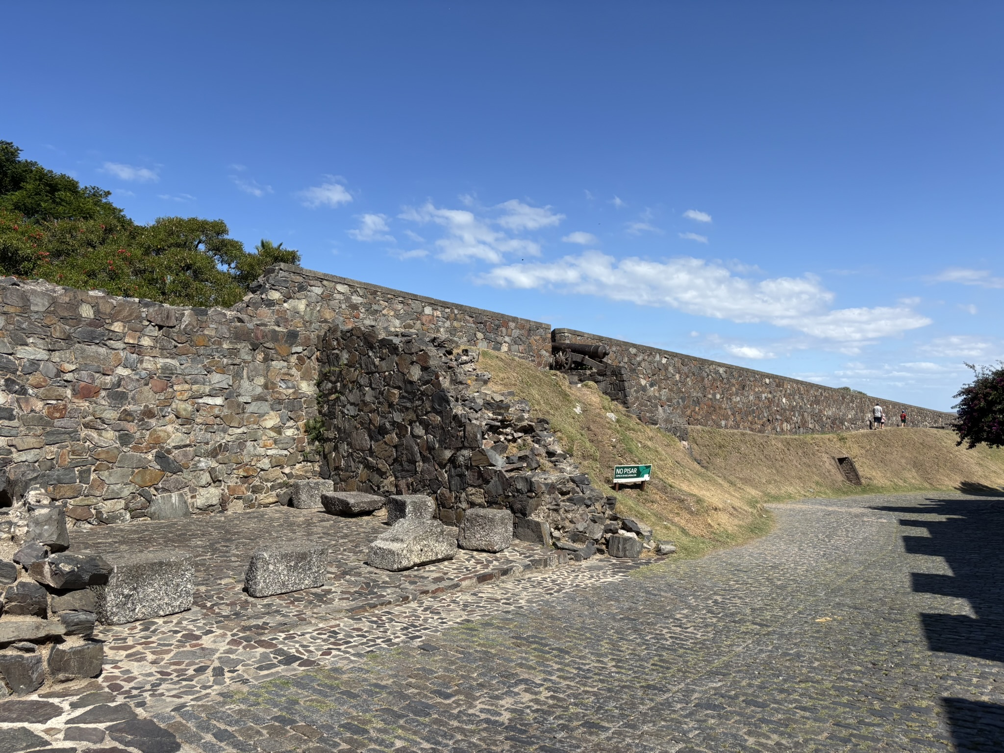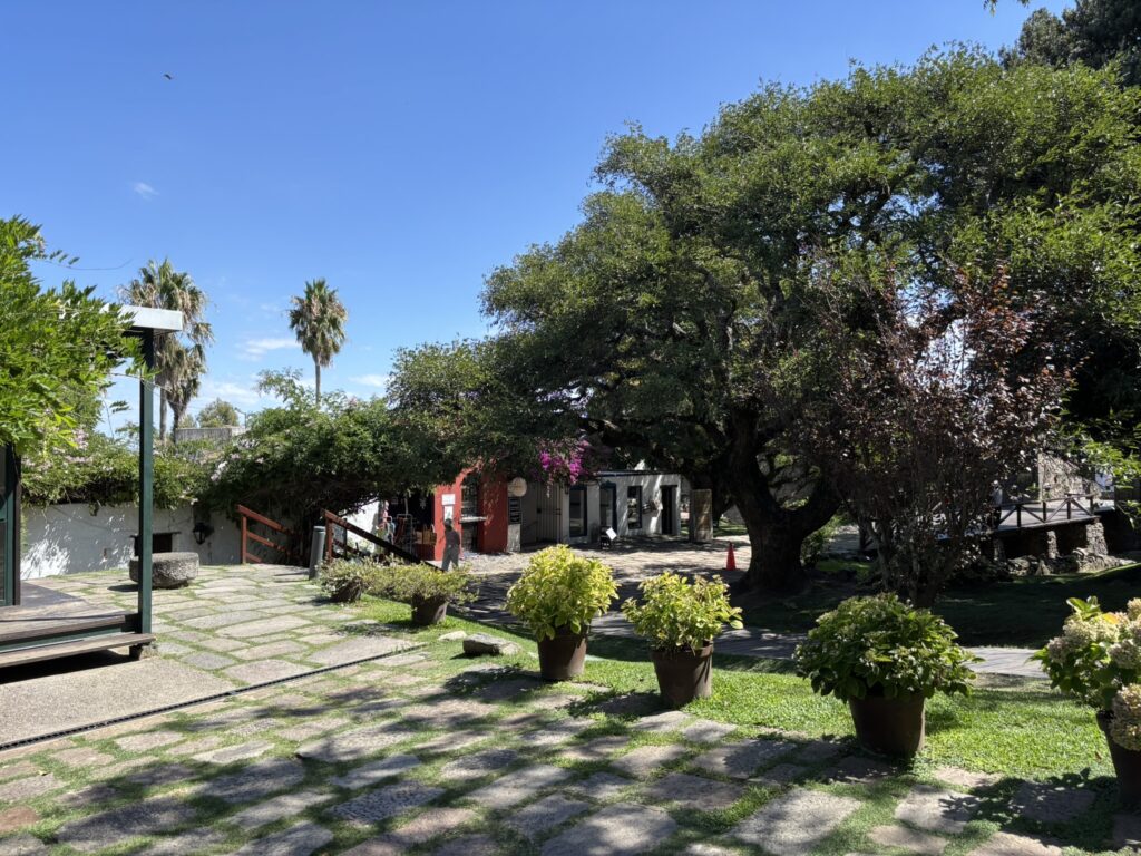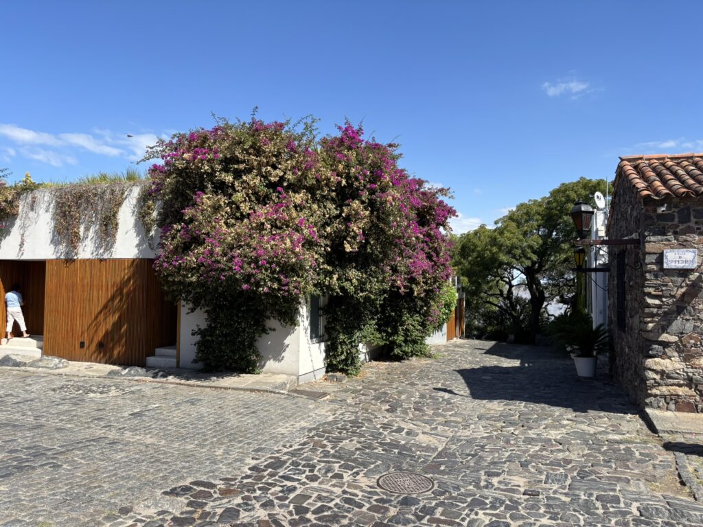 Then we wandered around the little town before strolling to the Barrio Histórico area. It oozed charm. Old fortress walls, cobblestone streets, cool, colorful birds, beautiful trees, and a great view of the Río de La Plata.